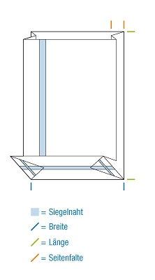 Breite + Seitenfalte x Länge: 60 + 40 x 150 mm