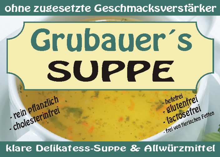 1 EL ca. 15-20g Grubauer's Klare Delikatess-Suppe in 1 Liter kochendes Wasser einrühren - fertig!