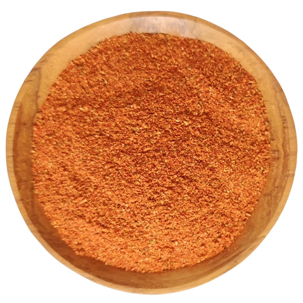 Zutaten: Paprika, SENFMEHL, Zwiebel, Koriander, Knoblauch, Kümmel, Pfeffer, Nelken, Majoran. [kann Spuren von SESAM und SELLERIE enthalten]