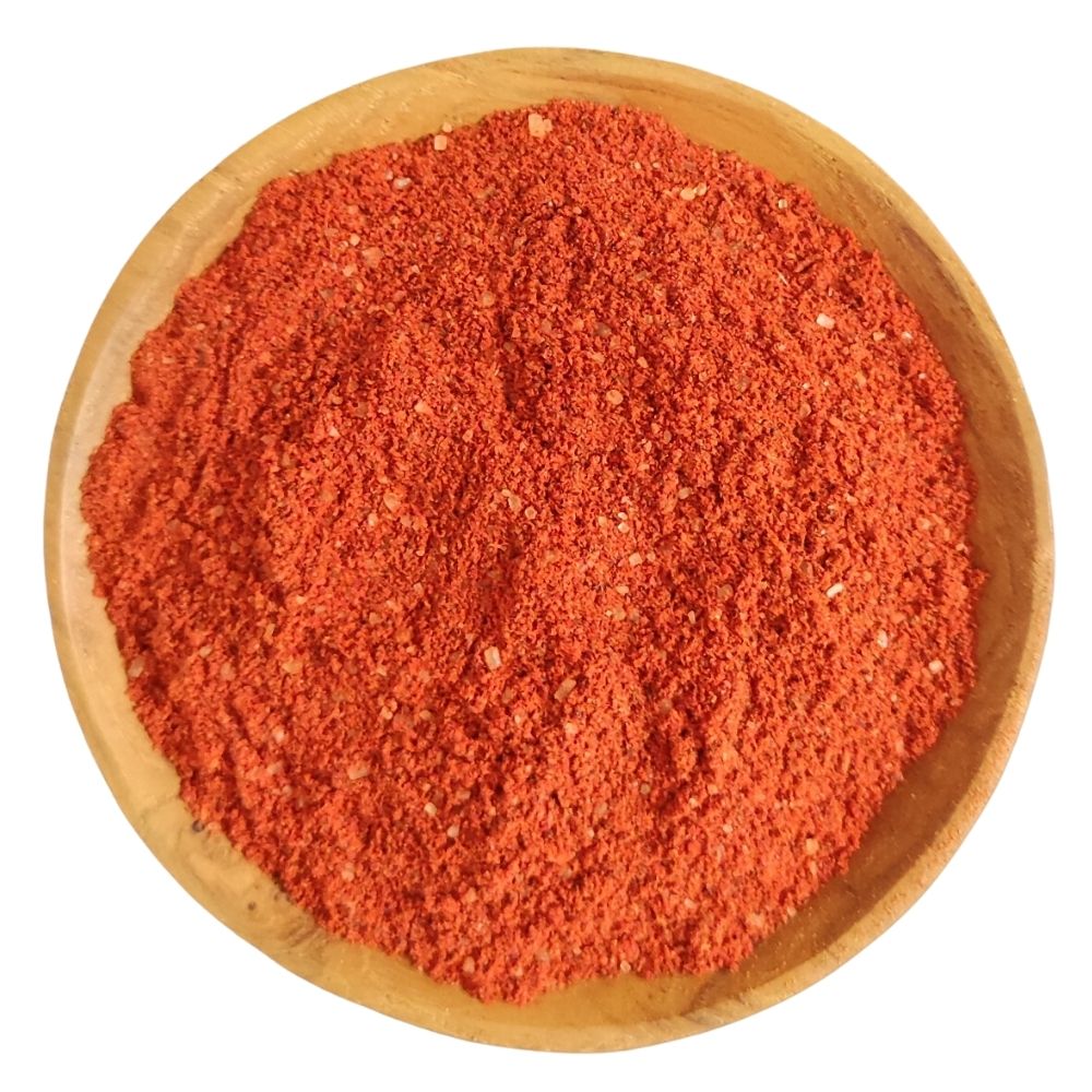 Zutaten: Gewürze (Paprika, Pfeffer, Cumin, Cayennepfeffer), Meersalz, Rohrzucker. [kann Spuren von Senf & Sellerie enthalten]