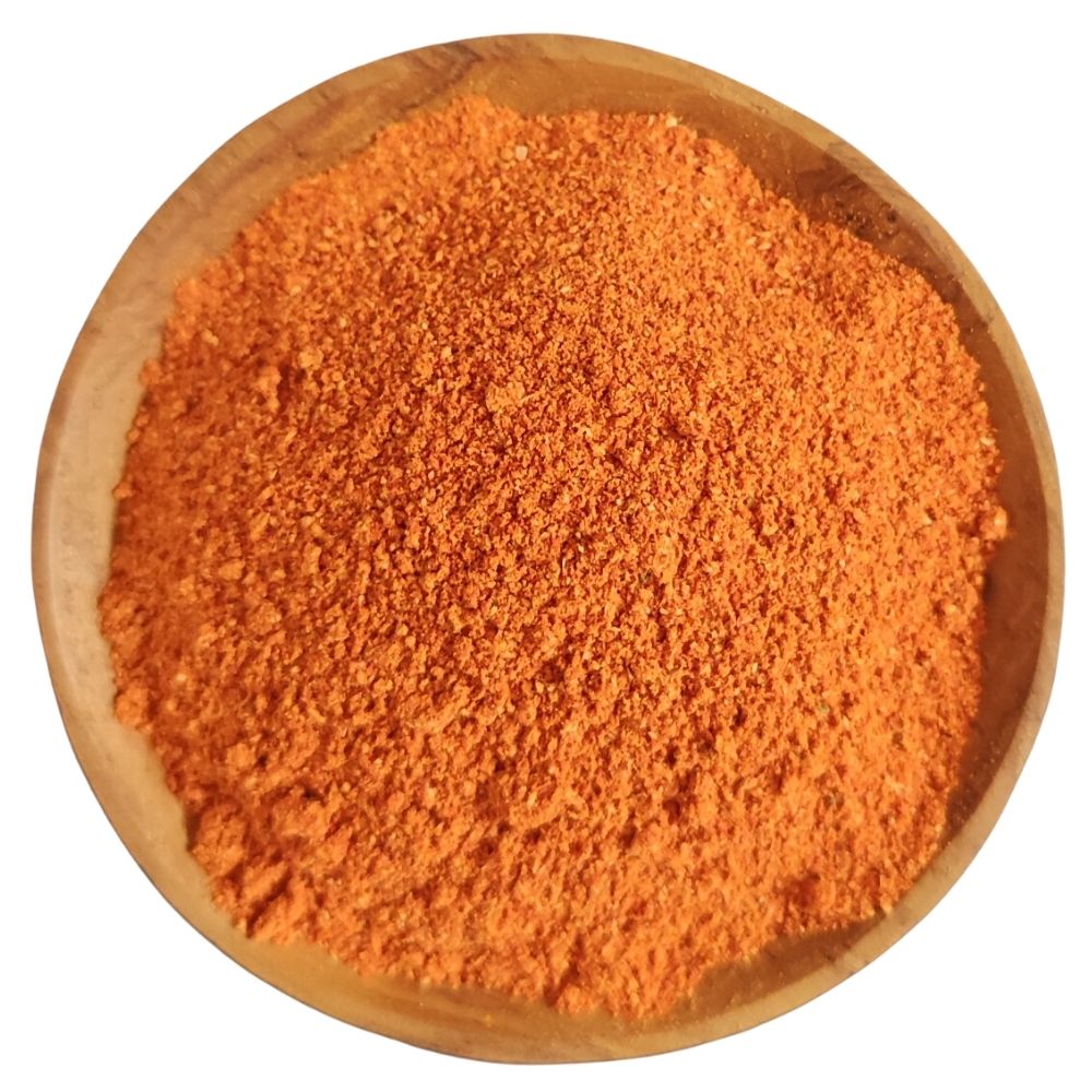 Zutaten: Paprika, Curry (Curcuma, Zwiebel, Knoblauch, Senfmehl, Cumin, Chillies, Ingwer, Koriander, Bockshornkleesamen, Pfeffer, Meersalz, Fenchel), Ingwer, Zwiebel, Pfeffer.