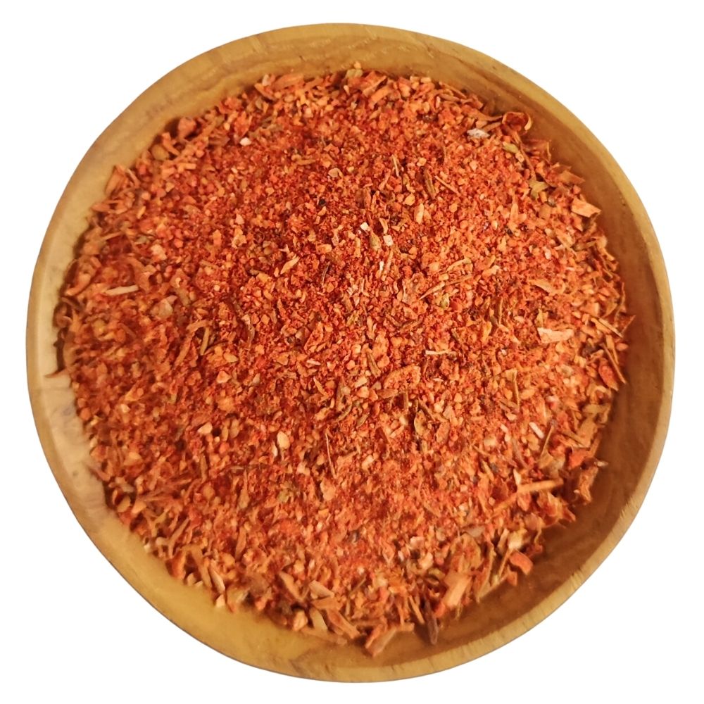 Zutaten: Pfeffer (schwarz & weiß), Knoblauch, Paprika, Zwiebel, Chillies, Oregano, Thymian.