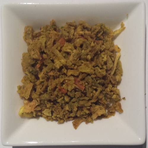 Zutaten: Röstzwiebel (Zwiebeln(76%), pflanzliches Öl, Weizenmehl, Salz), Zwiebel, Curcuma, Suppengewürzmischung (Karotten, Pastinaken, Selleriewurzel, Porree, Petersilie, Kerbel), Knoblauch, Ingwer, Chillies, Sellerieblätter. (kann Spuren von Sesam und Senf enthalten)