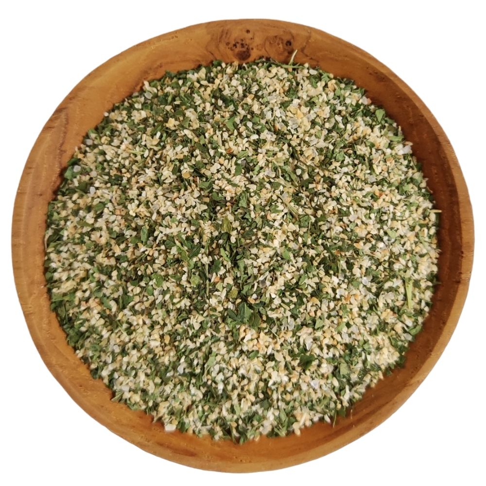 Zutaten: Knoblauch, Meersalz (19%), Zwiebel, Petersilie, Dillspitzen. [kann Spuren von Sellerie & Senf enthalten]Verwendung: Für Original spanische Aiolisauce. Einfach je nach Geschmack unter Mayonaise rühren und mit einem Schuß Zitronensaft abschmecken. Alternativ auch sehr gut als Dipp mit Quark oder Schmand zu Gegrilltem geeignet.""